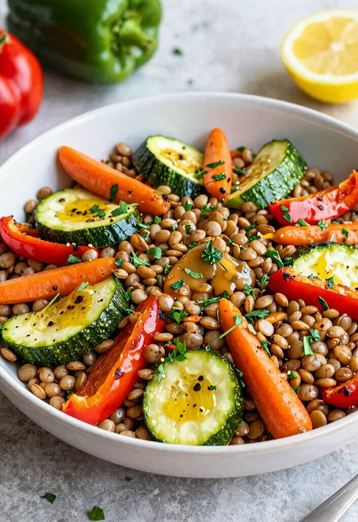 The combination of lentils and quinoa provides a complete protein source, making it perfect for athletes or anyone needing a nutritious boost. Add colorful veggies like bell peppers, cucumbers, and cherry tomatoes for extra crunch and flavor. A light lemon vinaigrette ties it all together beautifully.