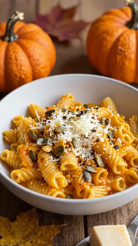 4. Toss cooked pasta in the sauce, serving warm with Parmesan and pumpkin seeds.
