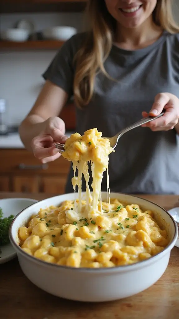 – Experiment with toppings: Top with panko bread crumbs and bake for a crunchy texture that adds another layer of deliciousness! The crispy topping contrasts wonderfully with the creamy mac and cheese.