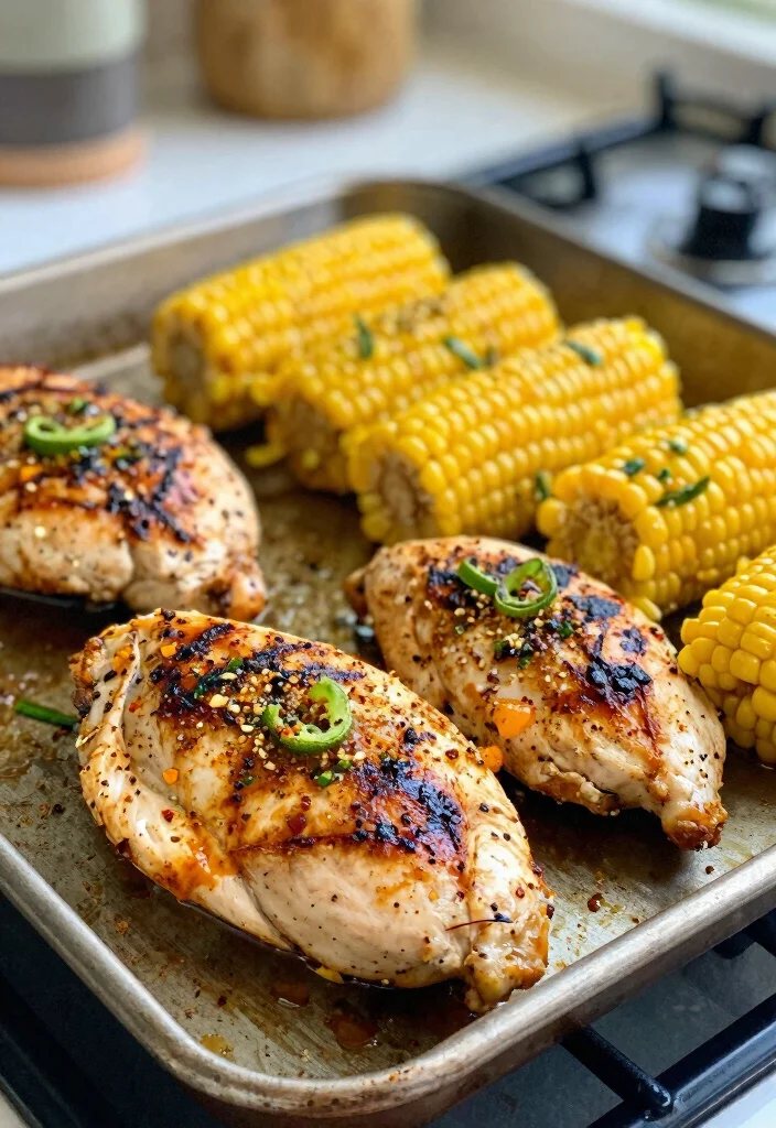 3. Coat chicken breasts in the mixture and place on a sheet pan with corn.
