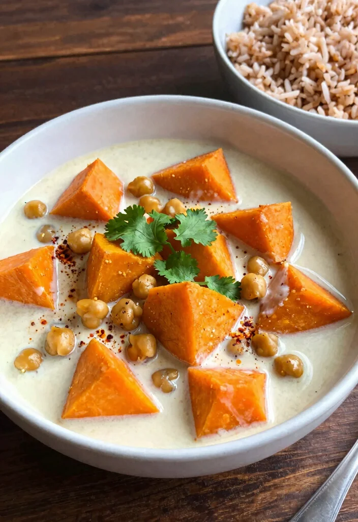 Want to indulge in a comforting dish that’s bursting with flavor? This sweet potato and chickpea curry is just what you need! Creamy coconut milk and aromatic spices create a rich, satisfying meal. The natural sweetness of the potatoes pairs perfectly with protein-rich chickpeas for a delightful balance.