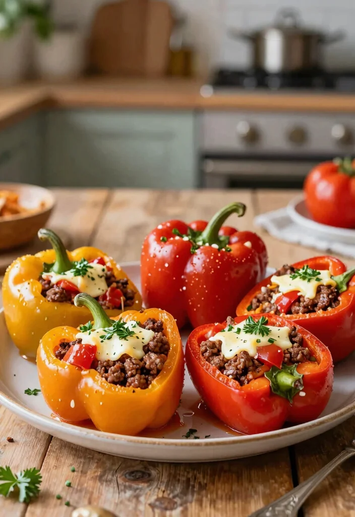 Cut the tops off the bell peppers, fill them with the savory mixture, and let your crockpot do the rest. Serve these stuffed peppers hot with a sprinkle of fresh herbs for a fun and nutritious way to enjoy your veggies, perfect for meal prep too!