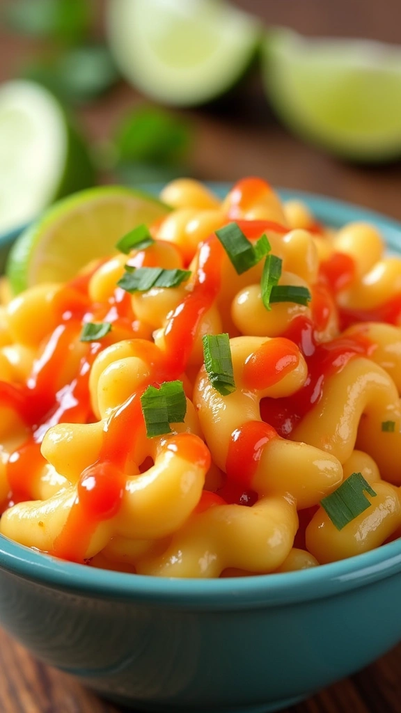 Want a zesty and spicy kick? This Velveeta mac and cheese topped with Sriracha sauce and a squeeze of lime is your answer! The combination of creamy cheese, especially with Velveeta cheese, along with the spicy and tangy burst of Sriracha, adds a fun element to this classic dish.