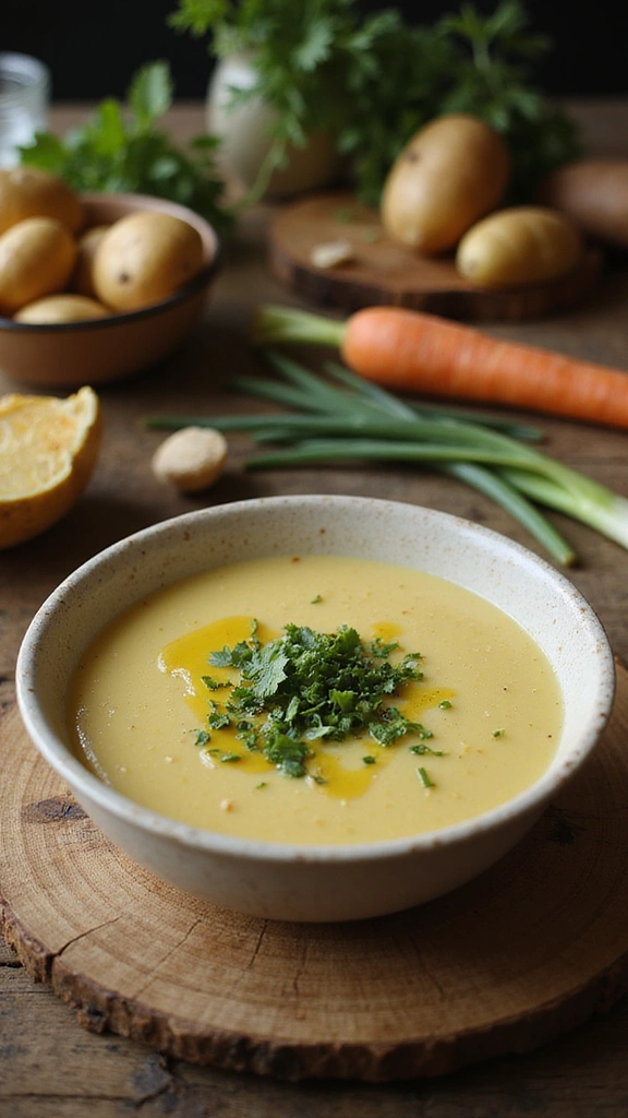 To achieve an even creamier texture in your vegan potato soup, consider adding a splash of coconut milk or a spoonful of nutritional yeast. Both ingredients enhance the creaminess while maintaining that comforting, hearty feel. You can also blend a portion of the soup to create a smoother consistency!